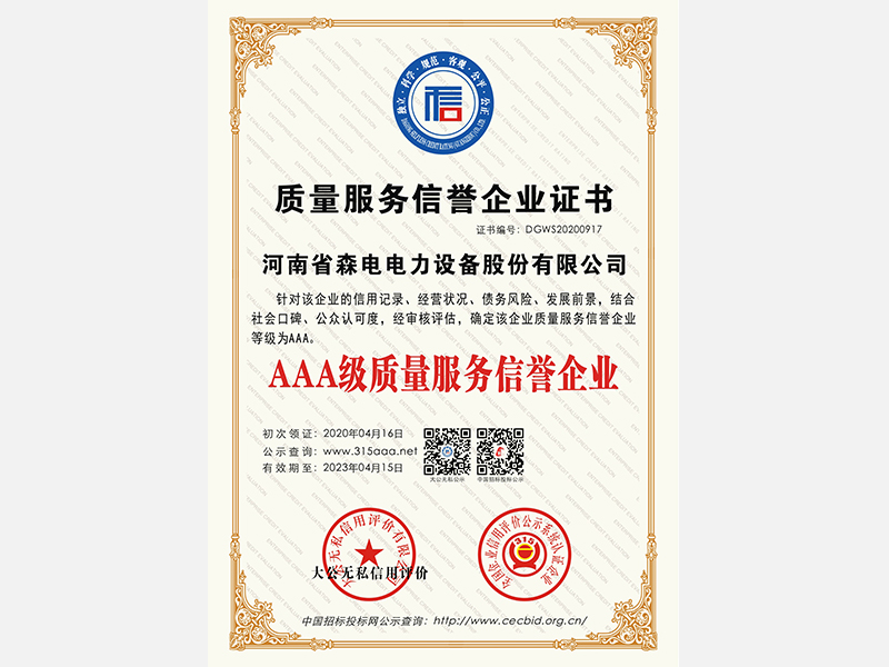 森電電力產(chǎn)品使用壽命可達(dá)30年,并提供對應(yīng)的**維護(hù)服務(wù),讓售后無憂